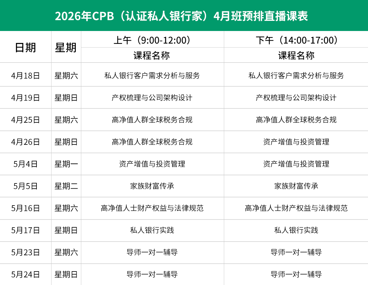 CPB认证培训课程共七大模块,由六大专业模块以及《私人银行实践》课程组成。