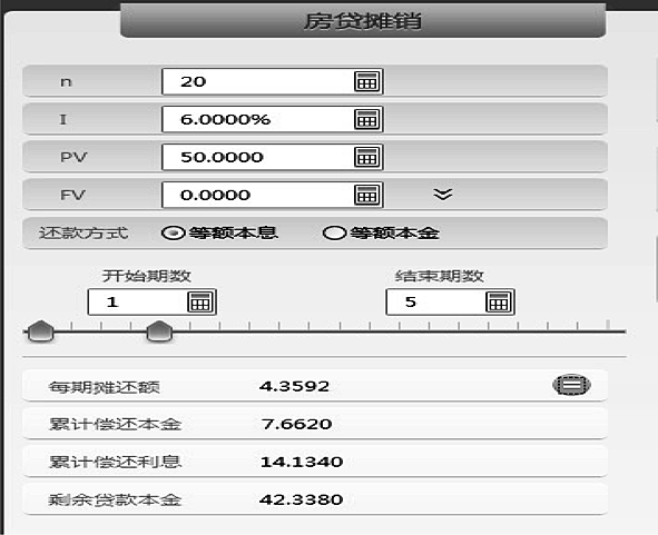 目前家庭资产按成本计价值为:3+20+3+80+8=114万元。用金融计算器计算,可得到自住房贷款余额为42.3380万元,操作步骤如下图所示:
