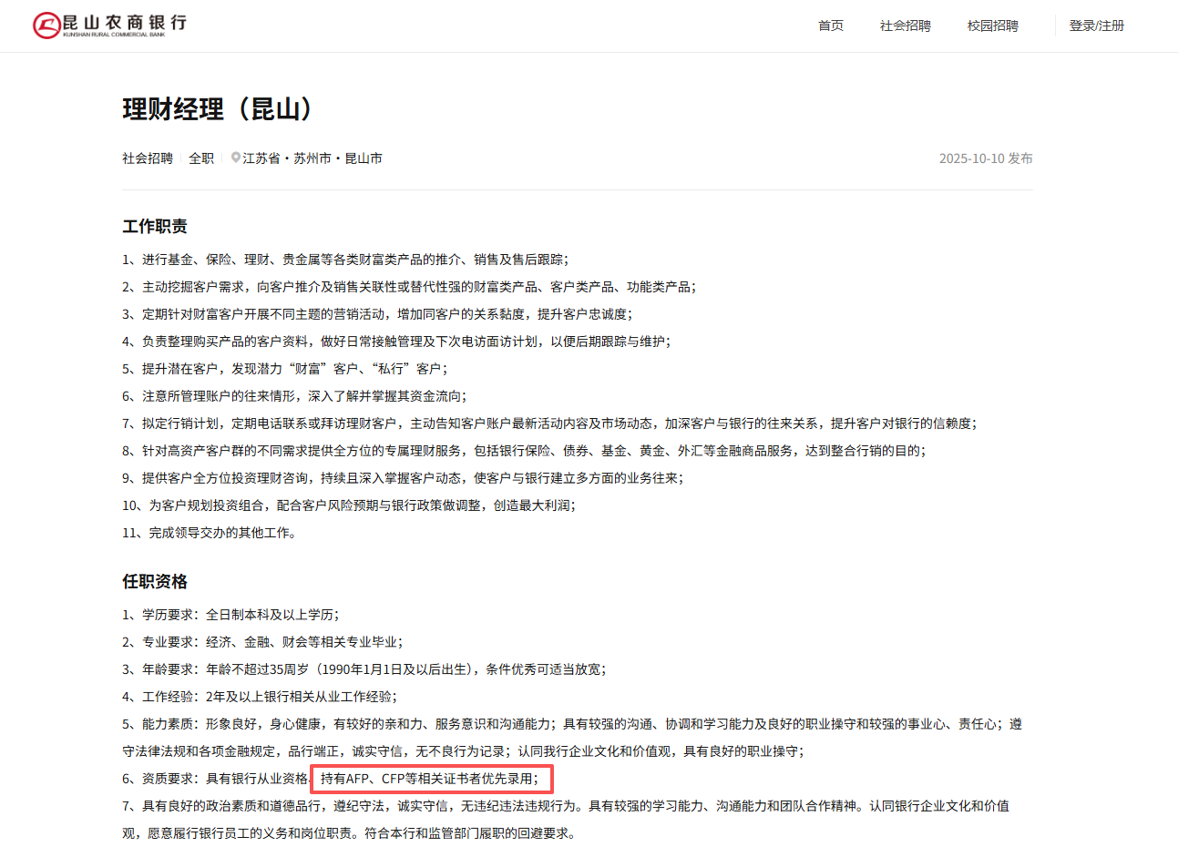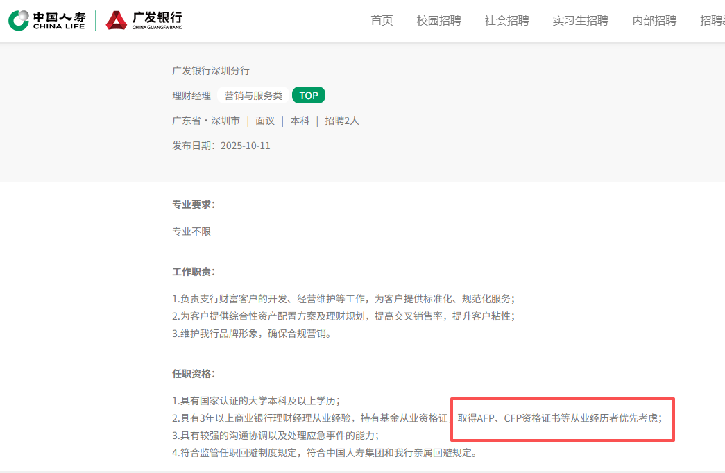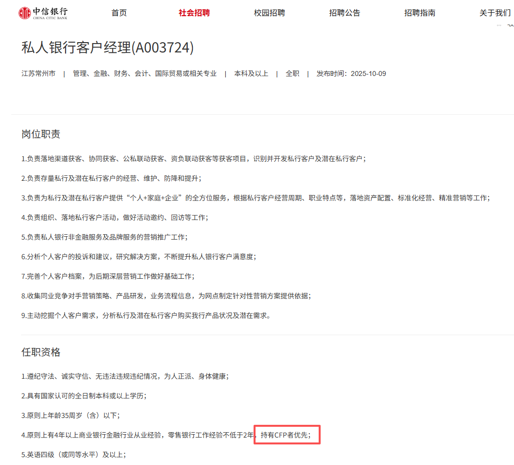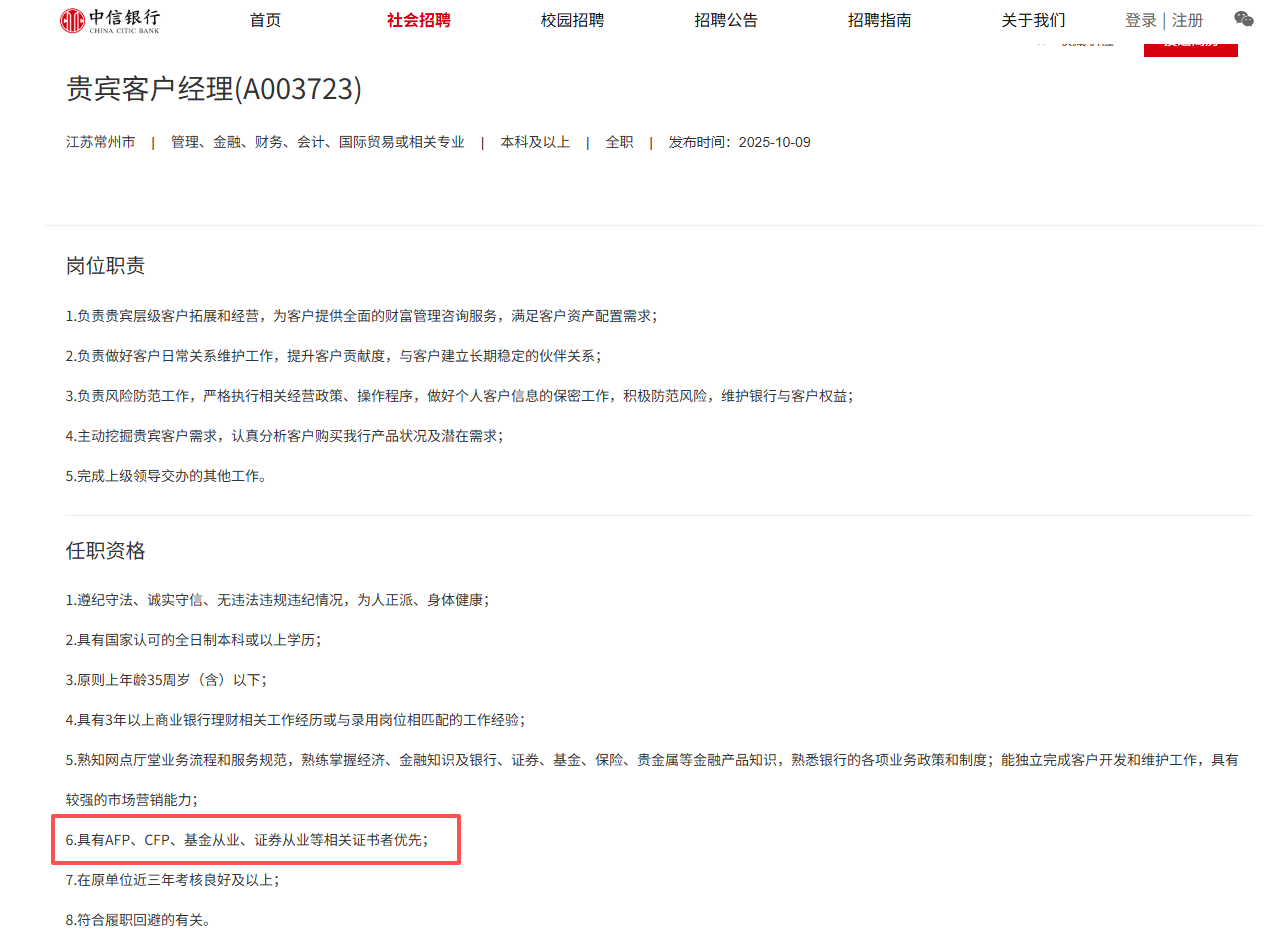 以上就是“金九银十,多家银行财富管理岗位青睐AFP/CFP持证人”的介绍,希望对您有所帮助。