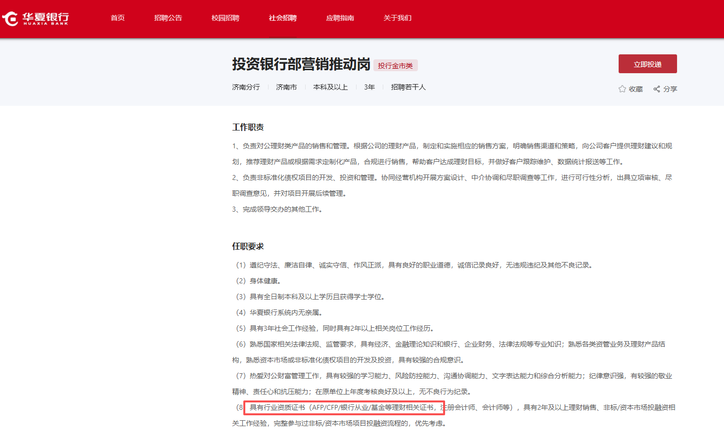 5. 华夏银行济南分行 投资银行部营销推动岗