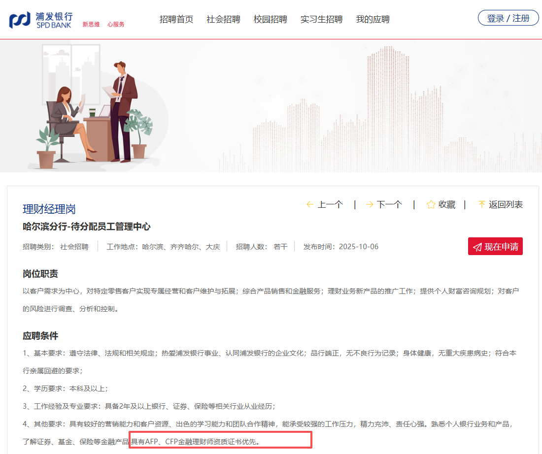 金九银十,多家银行财富管理岗位青睐AFP/CFP持证人