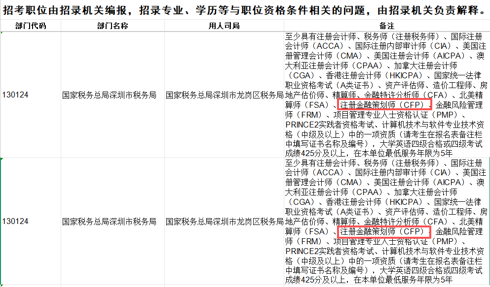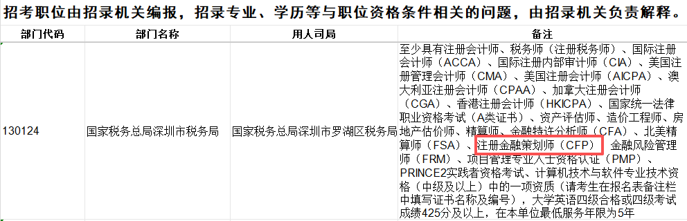 以上就是“2026年国考启动!国家税务总局深圳市税务局岗位——CFP持证人更具优势!”的介绍,希望对您有所帮助。