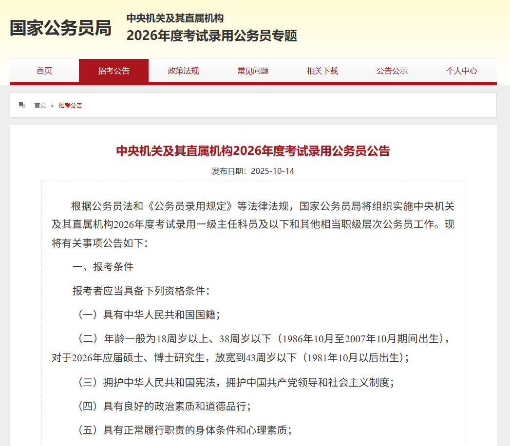 2026年度国家公务员考试报名已于本月15日正式开始,全国计划招录3.81万人。