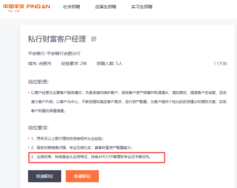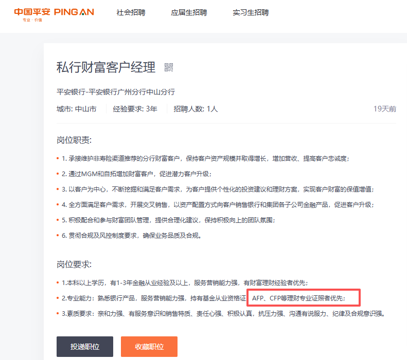 以上就是“平安银行全国多城招募私行精英,AFP/CFP持证人优先”的介绍,希望对您有所帮助。