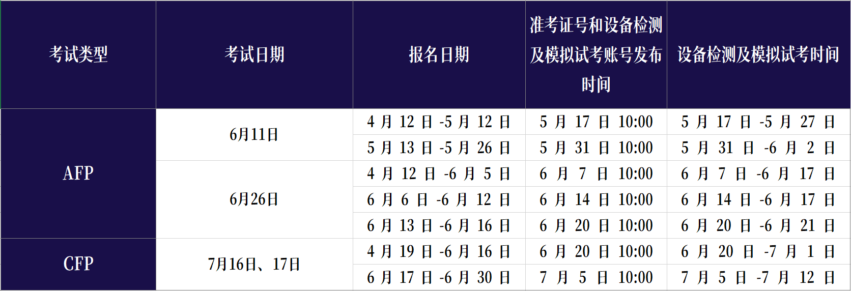 答:1)2022年6月11日在线AFP认证考试报名截止日期为2021年5月26日。