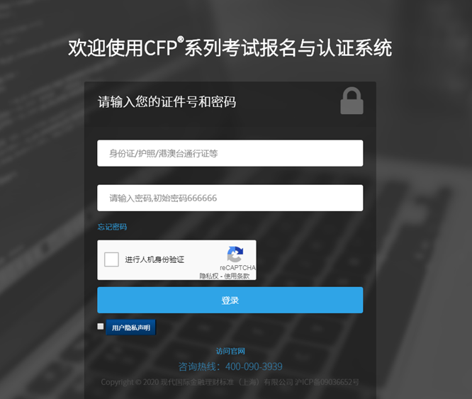 1.第一步:登录www.fpsbchina.cn,进入“CFP系列考试报名与认证系统”,并按照提示上传照片和完善信息。
