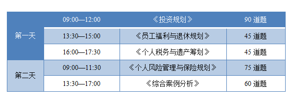 《投资规划》90题,《个人风险管理与保险规划》75题,《退休计划与员工福利》45题,《个人税务与遗产筹划》45题,《金融理财综合规划案例》60题。