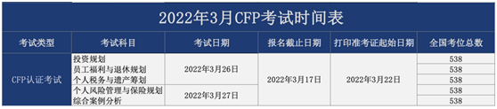 2022年1-3月CFP认证考试时间安排是怎样的?